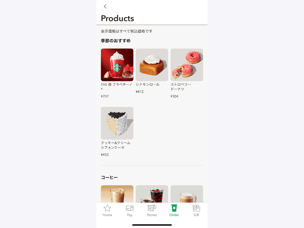 スターバックスカードへ入金が完了したら、実際に注文に進んでいきましょう。