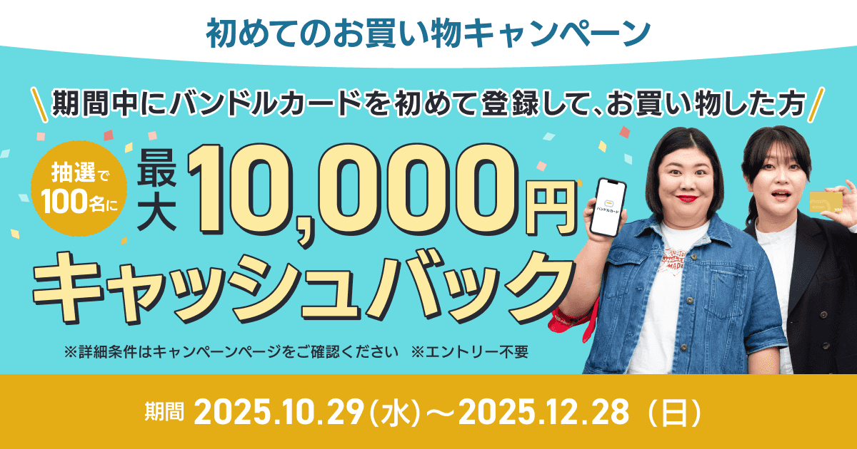 - 対象は期間中に初めてバンドルカードを新規登録し、Visa加盟店で支払いを行った方に限ります。